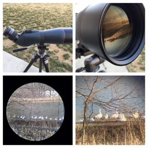 Optical quality is absolutely excellent. I phonescoped some pics with the scope at 20x and 60x. These are completely unedited…vignetting left in the image. Probably not the best test photos as I was photographing Snow Geese approximately 150 yards away..and over a road, so heat shimmer plays a part. Still, the images turned out pretty well (phonescoped with the Iphone 6S and Phoneskope Universal adapter.)